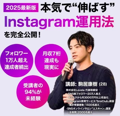 SNSClub@snsの学校は、Instagram運用や収益化を学べるとされる高額スクールですが、料金設定の高さや透明性の低さ、成果の不安定さから、オススメはできません。
